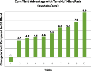 - Up to a $12 return on investment/acre.* Calculation is based on an application rate of 35 lbs./acre of TerraNu MicroPack vs. a grower standard blend.