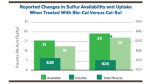 Bio-Cal also had a marked impact on sulfur availability. While total sulfur levels remained stable, the application of Bio-Cal increased both available and soluble sulfur pools by 20% and 28%, respectively. This suggests Bio-Cal is enhancing the biochemical cycling of soil sulfur, making it more accessible to plants.