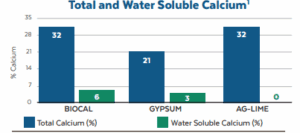 - Provides highly soluble Calcium readily available to plants upon application AND throughout the growing season